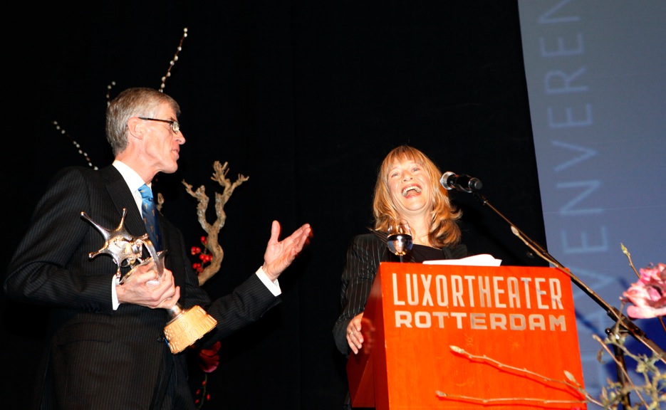 De Vertrekhal Oranjelijn heeft het Havenbeeld 2010 gewonnen. Deze jaarlijkse prijs stimuleert ondernemers aandacht te besteden aan de uitstraling van hun kantoor, bedrijfscomplex of terminal. Een filmpje over de drie genomineerden 2010 is hier te bekijken.President-directeur van het Havenbedrijf Rotterdam, Hans Smits, reikte de prijs uit aan Ieke Frankenmolen, die het beeld namens gebouweigenaar Rob Kooij in ontvangst nam. Een mooie kroon op al zijn werk van de afgelopen jaren!