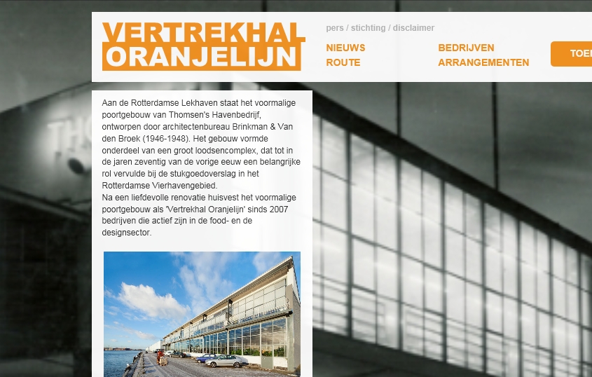 29 jan '21 Geüpgrade entree Vertrekhal Oranjelijn 28 aug '14 Poortgebouw in tijdschrift 'Meent' 21 jun '14 Lezing over Thomsen's Havenbedrijf en Jan Backx 4 dec '13 Vertrekhal Oranjelijn Open Monument van de Maand! 8 sep '12 Wereldhavendagen: op de koffie in de Vertrekhal Oranjelijn